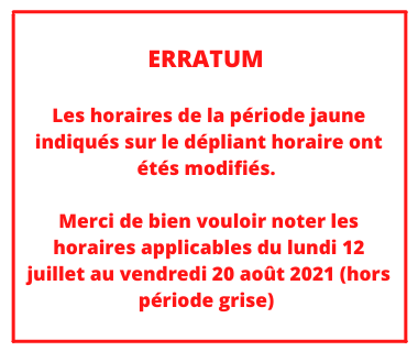 ERRATUM Les horaires de la période jaune